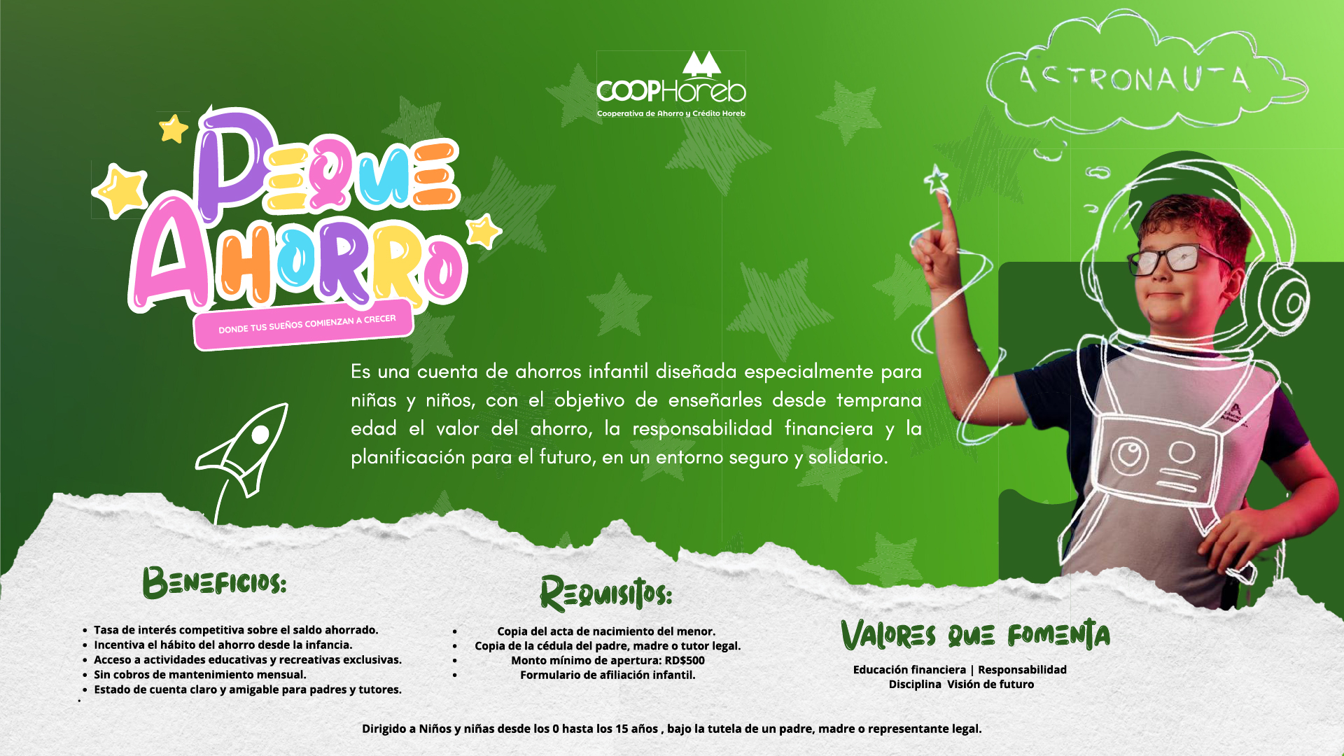 Es una cuenta de ahorros infantil diseñada especialmente para niñas y niños, con el objetivo de enseñarles desde tempana edad el valor del ahorro, la responsabilidad financiera y la planificación para el futuro, en un entorno seguro y solidario